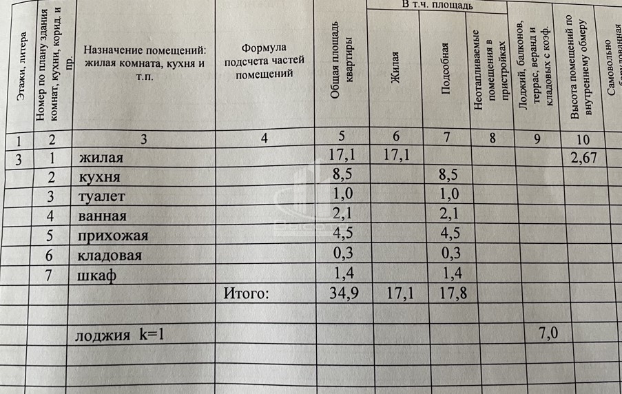 | Жилая площадь | 17.1 |