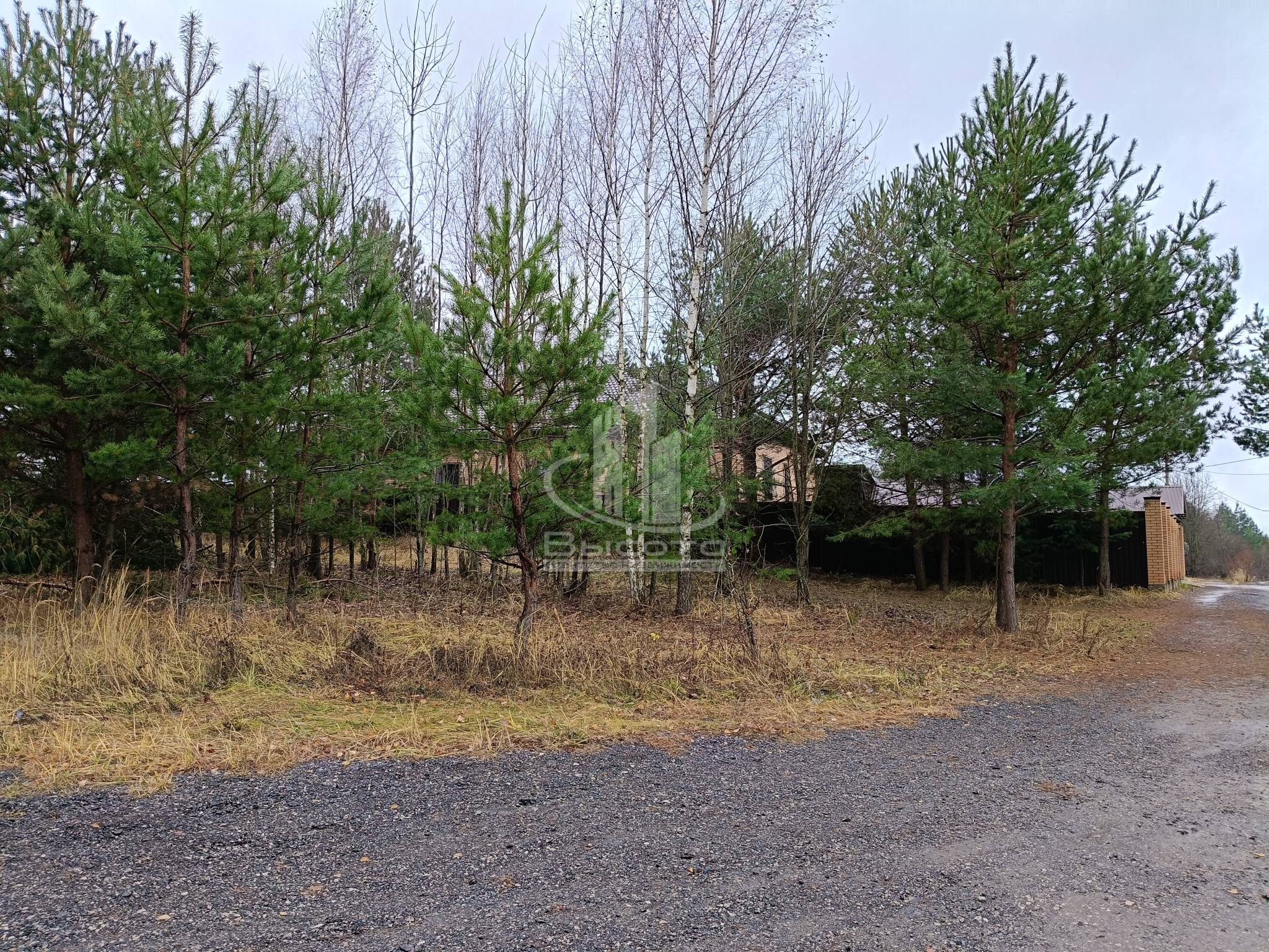 Участок в собственности правильной формы с молодыми соснами. Свет, газ, дорога с твердым покрытием до участка. Соседи живут. Объект №17103.
